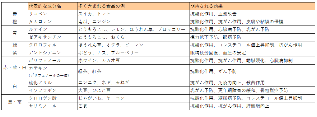 また、体の維持に必要な炭水化物、脂質、たんぱく質、ビタミン、ミネラル、食物繊維の6大栄養素に加えて、第7の栄養素とも言われる「ファイトケミカル」をしっかりと摂ることも意識したいところ。